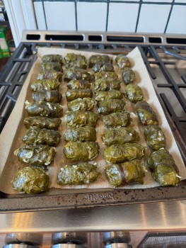 Once again, our garden is providing more produce than we can handle.  The first harvest of our chard and beet leaves proved to be enough to make a full recipe of dolmades.