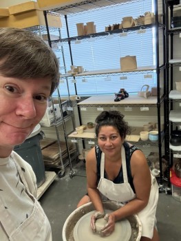 This month we are taking a weekly course to learn how to make pottery on a wheel at the Chilliwack Cultural Centre.  What an amazing facility!  Our instructor is excellent although our creations do not currently reflect that.  So far Jamie has made a homely ashtray that she likened to something she made in pre-school and Michelle has made a bowl.  Watch out, family, ugly pottery for all for Christmas!