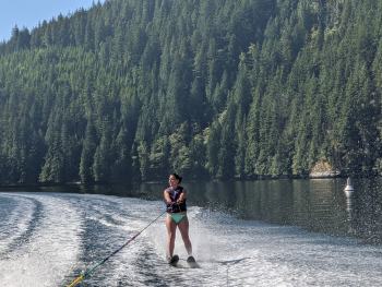 I love trying new sports. I have been invited out a few times to try water skiing up the Indian Arm. It is so incredibly intimidating and fun to be pulled behind a boat. It took me a few tries to get up but once I was out of the water I can ski for a few minutes.